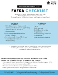 - Completar solicitudes de ayuda financiera y becas como FAFSA y TASFA